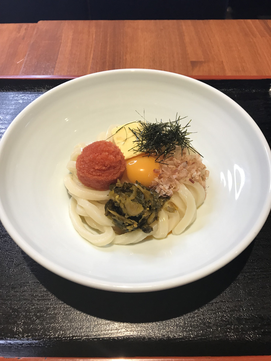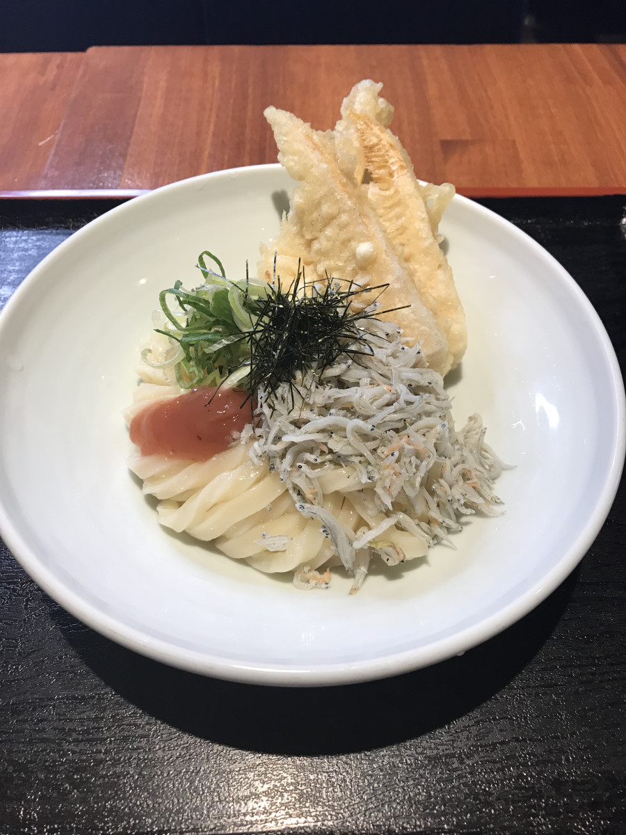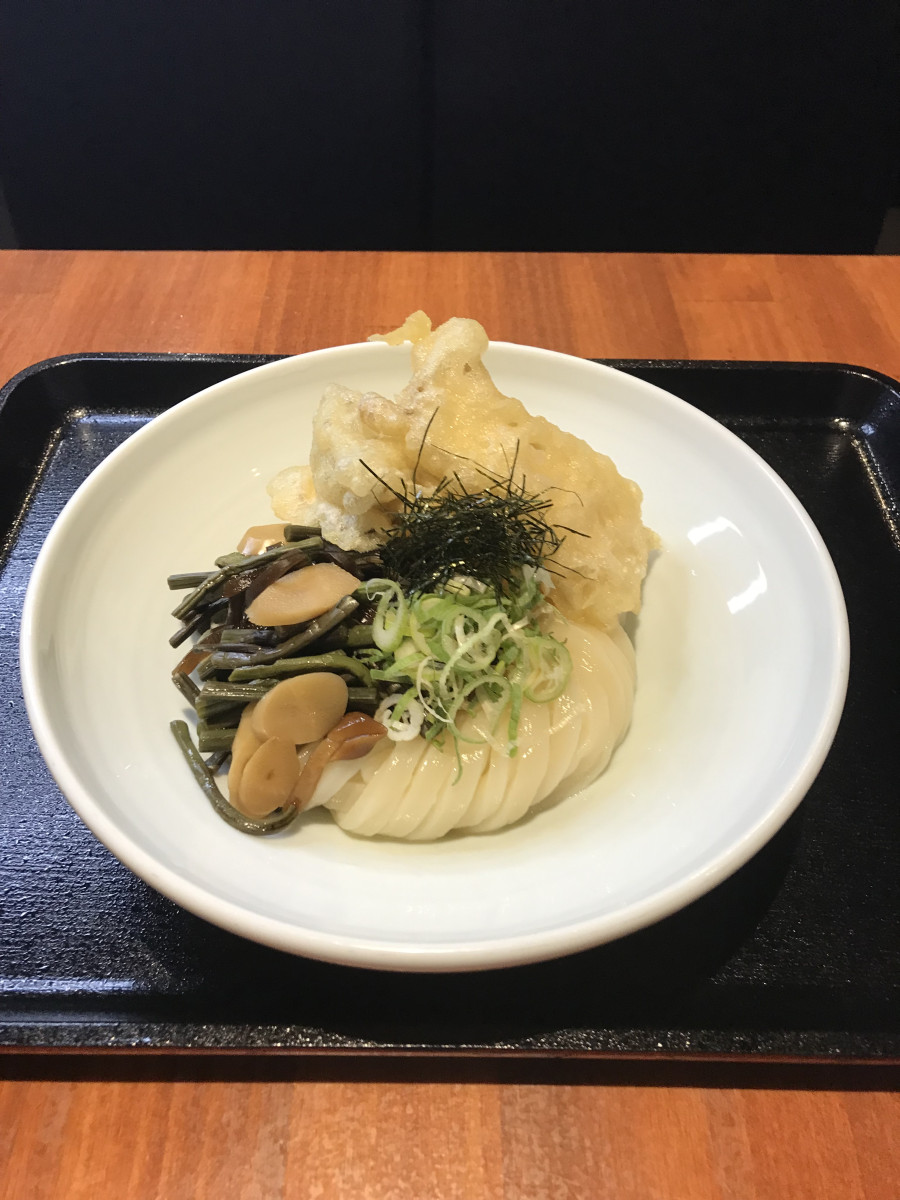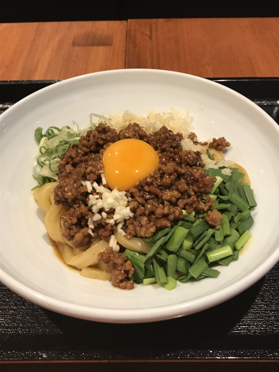 - 旨豚天とキムチとラー油のぶっかけうどん