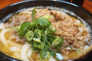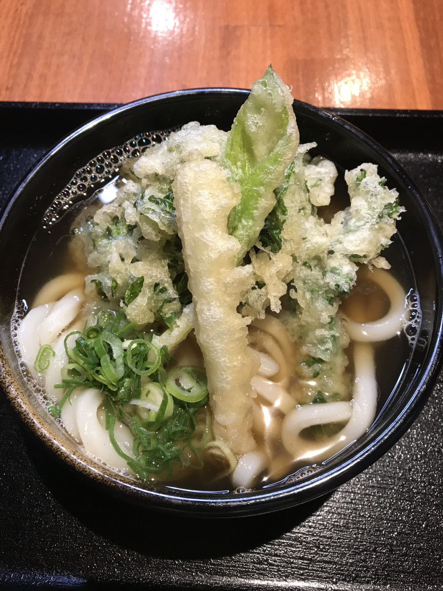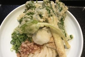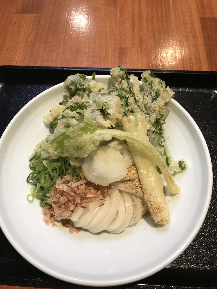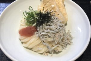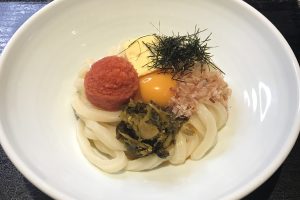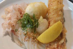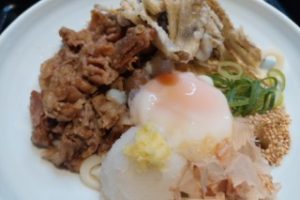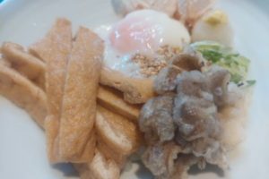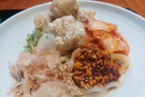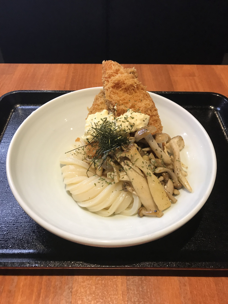 - 旨豚天とキムチとラー油のぶっかけうどん